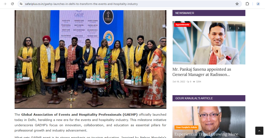 The Global Association of Events and Hospitality Professionals (GAEHP) officially launched today in Delhi, heralding a new era for the events and hospitality industry. This milestone initiative underscores GAEHP’s focus on innovation, collaboration, and education as essential pillars for professional growth and industry advancement.