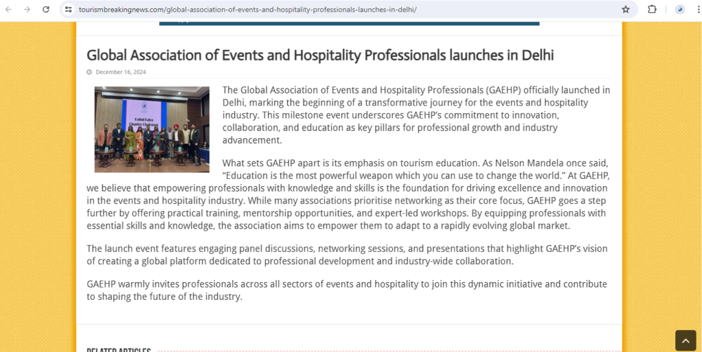 Global Association of Events and Hospitality Professionals launches in Delhi