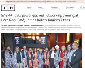 The Global Association of Events and Hospitality Professionals (GAEHP) successfully hosted an unforgettable networking evening at Hard Rock Cafรฉ, Delhi, bringing together distinguished leaders, trailblazers, and professionals from across Indiaโs tourism and hospitality sectors.